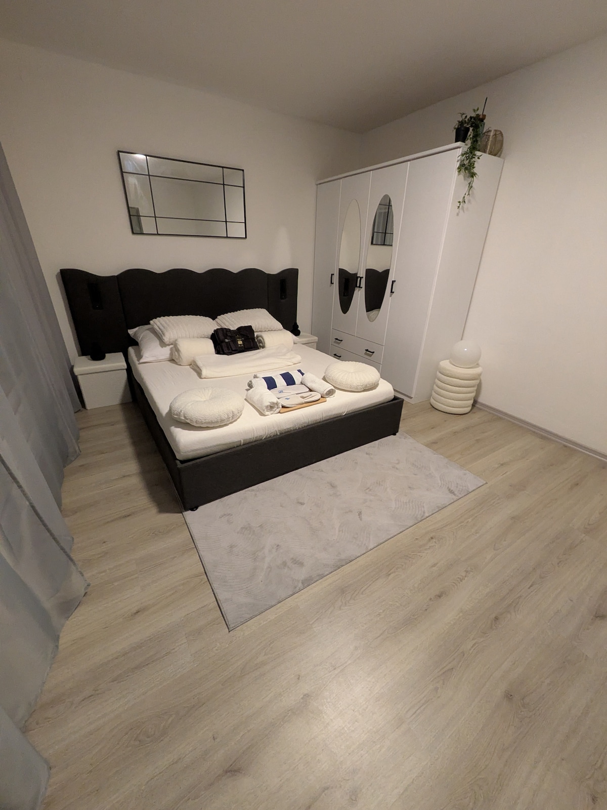 Vergiss deine Sorgen – in dieser geräumigen und ruhigen, ca.70qm großen Unterkunft. Durch einen kleinen Flur, der als Garderobe genutzt werden kann, gelangt man in eine voll ausgestattete Küche. Es gibt ein Schlafzimmer mit einem Doppelbett 2,00m x 2,00m und TV und ein weiteres Schlafzimmer mit einem Komfortbett 1,40m x 2,00m. Ein Bad mit Fußbodenheizung, Regendusche, Waschbecken und Toilette. Der offene und lichtdurchflutete Wohn und Essbreich kann auch als Arbeitsplatz genutzt werden.