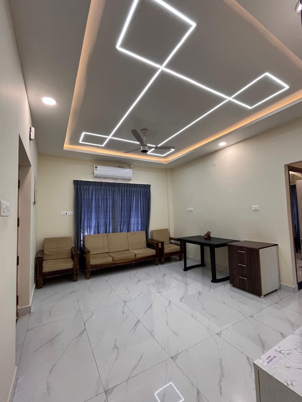 DL Homestay is a peaceful First-floor apartment located at the foothills of Arunachala. It offers a simple yet soulful living experience, ideal for travelers seeking both comfort and quietude . Living Area-The living room includes chairs and a low table for dining, a versatile single cot that doubles as a sofa bed. Bedroom-The cozy AC bedroom feature 2 queen size bed with attached bathroom provided water heater. Kitchen- Basic amenities provided. Balcony,terrace and car parking provided.