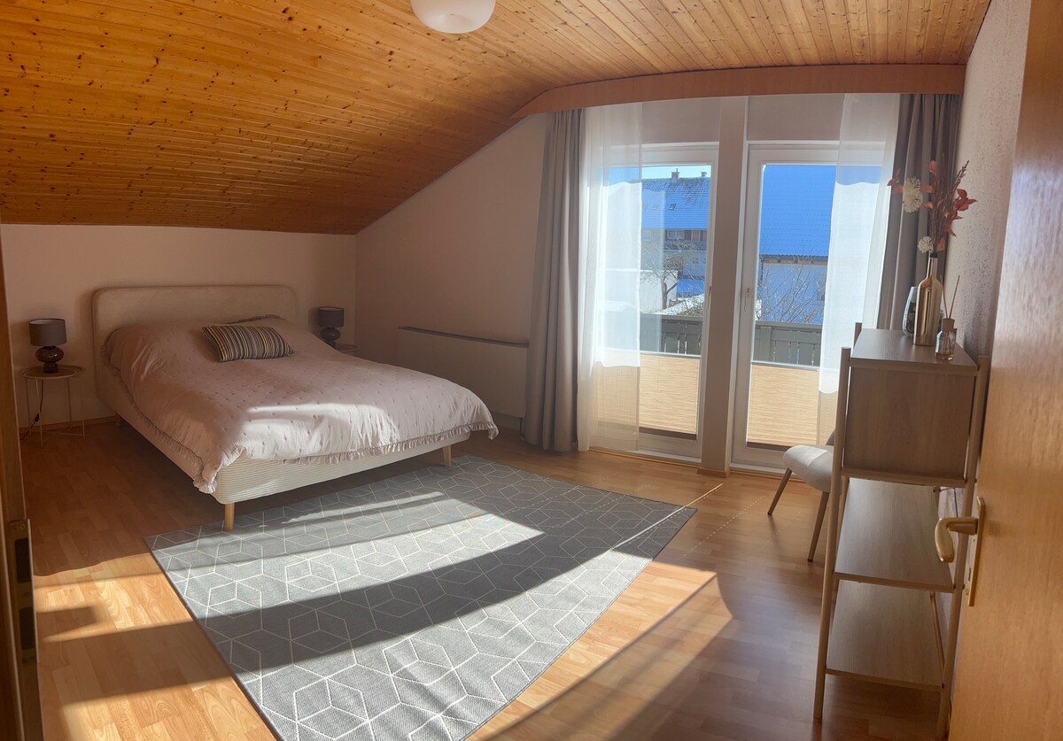 Apartamento en una granja de 250 años a una altitud de alrededor de 1.100 metros con una amplia terraza, jardín y sauna. Se extiende sobre (el superior) de tres pisos y tiene alrededor de 80 m2. Además de la sala de estar, cocina (sala de estar) y baño, hay cuatro dormitorios. Uno de los dormitorios está en la planta baja y tiene su propia entrada al exterior. El baño y las habitaciones restantes están arriba. Al dormitorio en el ático solo se puede llegar a través del segundo dormitorio en el piso superior.