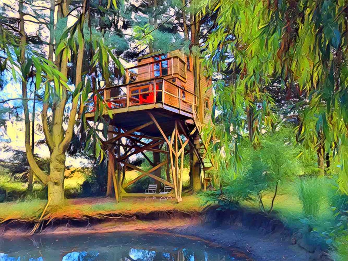Situé dans un domaine du 14ème de 7 hectares,à la lisière de la forêt d'Orléans plus grande forêt domaniale de France, en pleine zone Natura 2000, proche de Paris, venez découvrir notre cabane atypique pleine de charme, à la décoration typique du milieu du 19ème siècle, avec toutes les commodités (WC, salle d"eau, poêle à bois pour se chauffer en hiver, petite cuisine ) Lieu idéale pour le repos, vous pourrez y comtempler toute la faune sauvage. Barque à disposition. Petit déj,repas sur demande