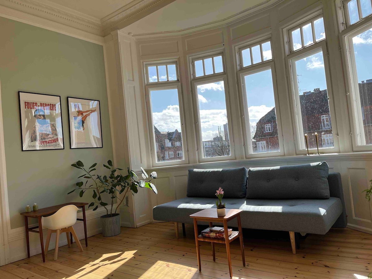 Unique and magnificent private apartment in an unbeatable location at the heart of Inner Copenhagens middle age area. Your own “town house” with a private entrance from a quit sidestreet. A high-end luxury spread over 140 sqm, you stay in a fusion Art Gallery luxury apartment Design furniture, hand built kitchen, wooden floors. high ceilings, contemp. art. Historic estate built in 1789 once a theater This place is also perfect for business meetings / work stays of longer or shorter periods