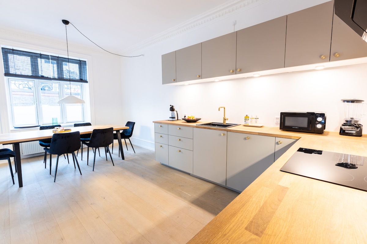 The property is located in the heart of Copenhagen’s historic center, surrounded by charming restaurants, cafés, vibrant bars, and unique shops. Just around the corner lies the beautiful Rosenborg Castle Gardens – perfect for a morning run, a quiet moment with a book, or a picnic. After a day exploring the city’s rich culture and iconic sights, unwind with a long soak in the bathtub of this stylish apartment, set in a beautifully preserved 1844 building – where history meets modern comfort.
