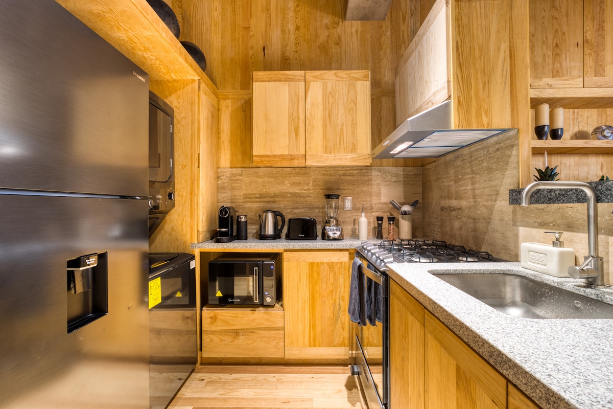 Unbelievable 2 br apartment in a unique building designed by mexican architect Alberto Kalach. Located in La Roma this beautiful apartment has the perfect location to enjoy an incredible trip to Mexico City. You can walk to the best food, shopping and party spots while enjoying and amazing apartment where you can rest.