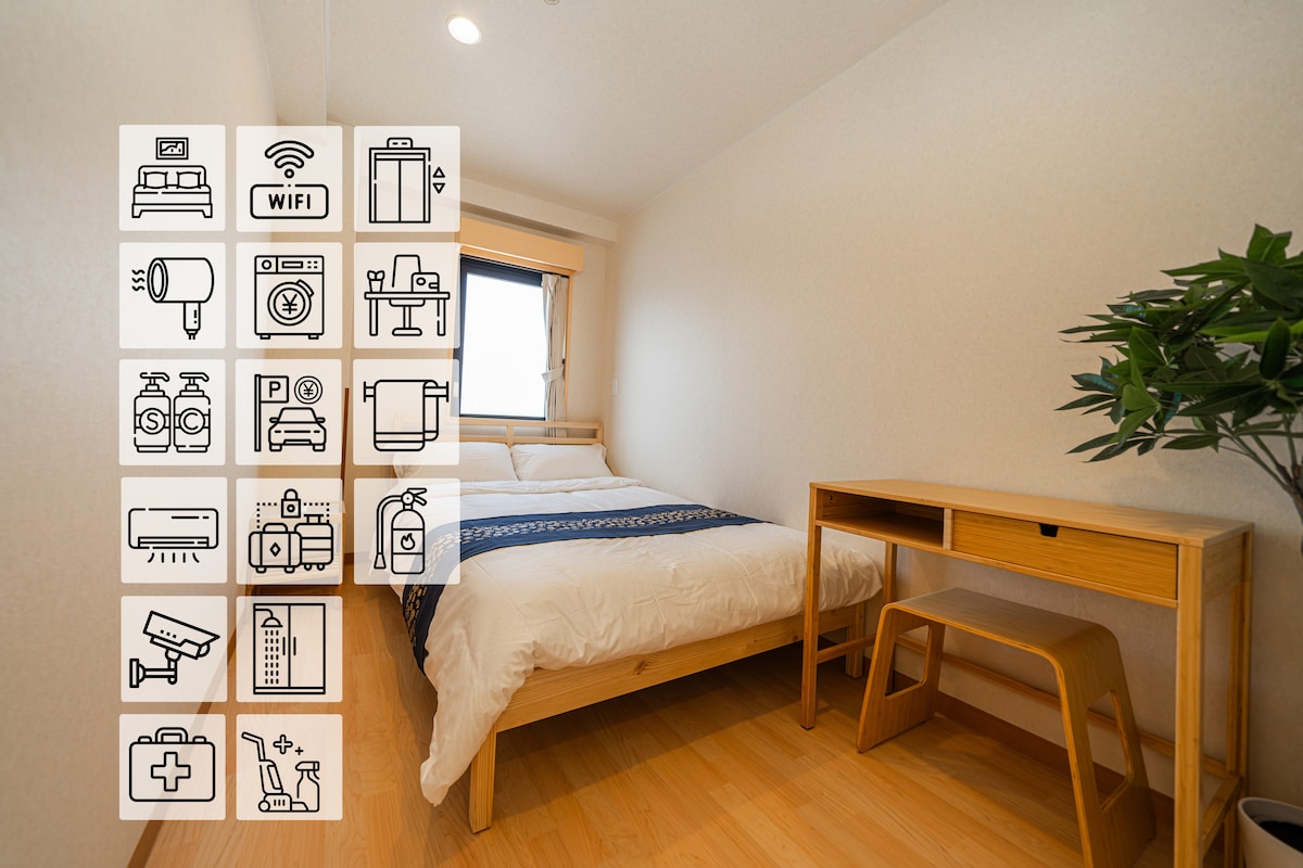 Hotel Real de Tokio #201 con 26 ㎡ de espacio interior, 1 cama grande de 2*2 m y 2 camas pequeñas de 1.95*1 m con capacidad para 4 personas
