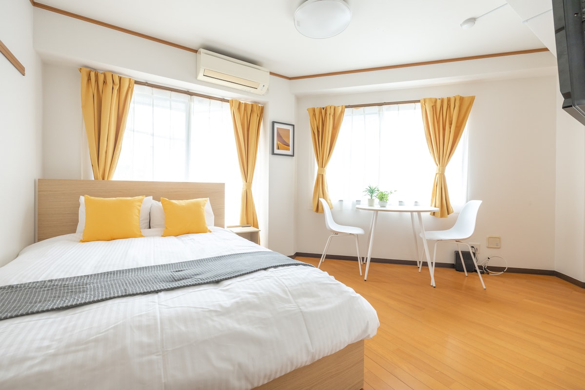 Estudio Japandi tranquilo y nuevo|Cerca de JR・Subway|Lavado y secado todo en uno|Ascensor|Almacenamiento de equipaje