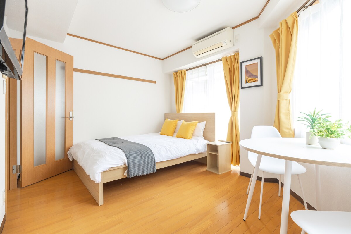 Estudio Japandi tranquilo y nuevo|Cerca de JR・Subway|Lavado y secado todo en uno|Ascensor|Almacenamiento de equipaje