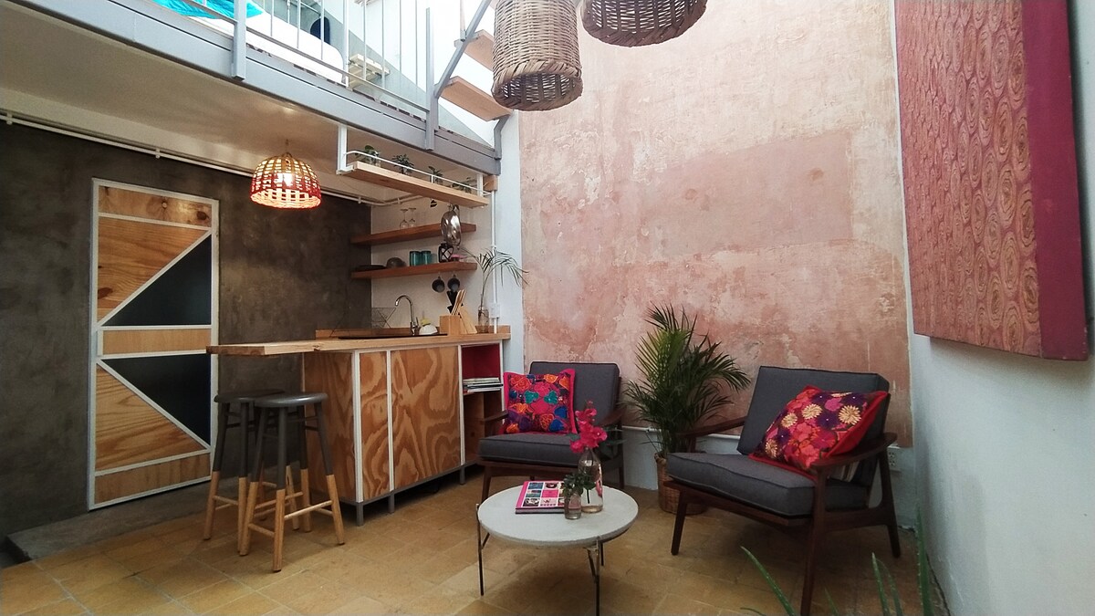 Juega al futbolito e inspírate del arte que llena las paredes de este loft de estilo contemporáneo. El hormigón le pone el sello a este departamento y se combina a la perfección con mosaicos y muebles. Es cómodo e ideal para recorrer la ciudad a pie. Tiene una terraza desde la que se aprecia maravillosa vista de la zona. El edificio tienen cámaras de vigilancia y seguridad en la entrada, puedes estar tranquilo al salir a conocer