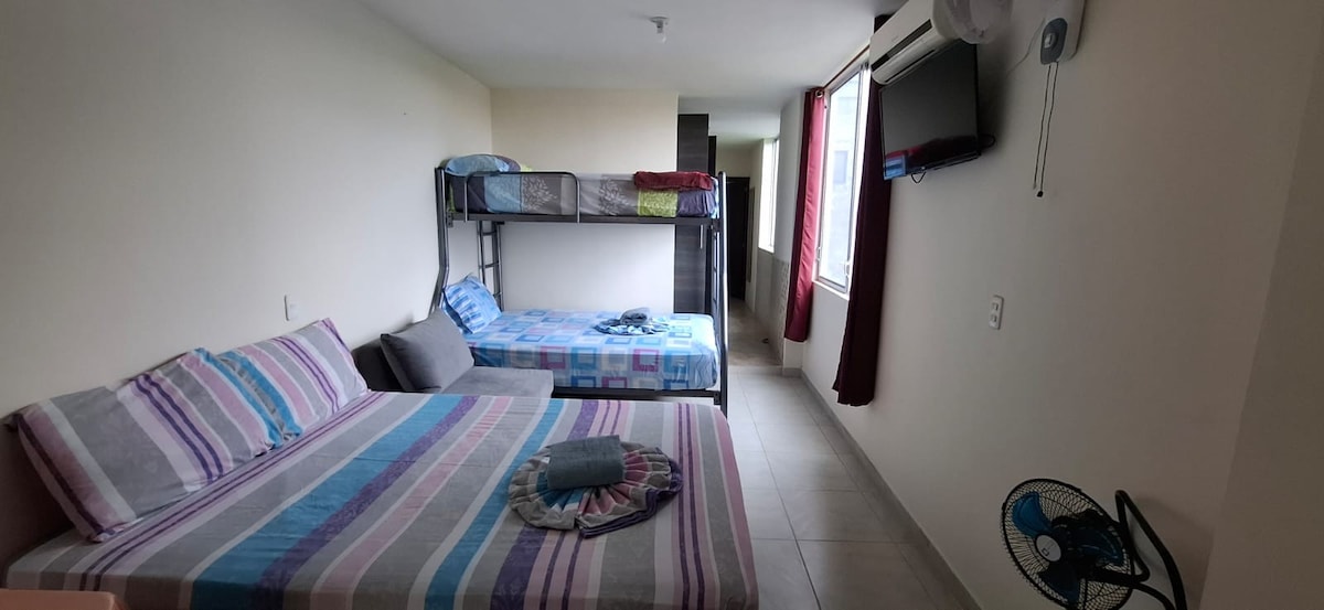 Habitación familiar para 6 personas cómodas AC