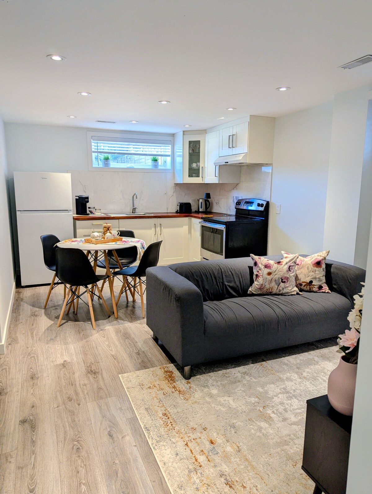 Disfruta de una estancia elegante y tranquila en este alojamiento de un dormitorio en la planta baja, perfecto tanto para viajeros de placer como de negocios. Con entrada privada, aparcamiento y todos los elementos esenciales, es tu hogar ideal lejos de casa. Las características incluyen cocina completa, baño, internet, TV inteligente, una cama tamaño queen y un sofá cama, y un espacio de trabajo funcional. A pocos pasos de FreshCo, Walmart, restaurantes y servicios. A minutos de Vaughan Mills, Canada's Wonderland, el Hospital Cortellucci y transporte público.