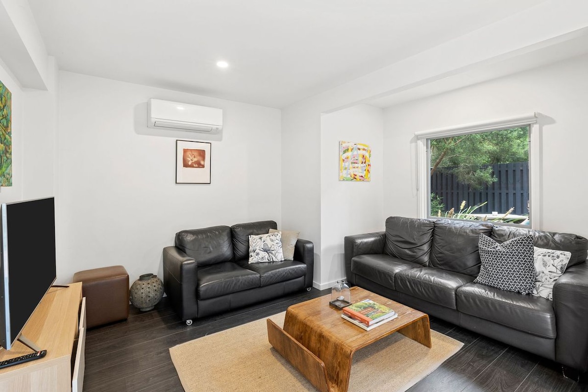 A five-minute stroll from Rosebud Beach, this coastal retreat offers a rare two-storey layout with ample space for small groups. Relax in the stylish living area, cook meals in the modern kitchen, or fire up the BBQ to dine alfresco on the leafy patio. Enjoy year-round comfort with split-system heating and cooling throughout. Explore vibrant eateries nearby on Point Nepean Road or take a scenic cable car ride for sweeping views of Port Phillip Bay and the Mornington Peninsula.