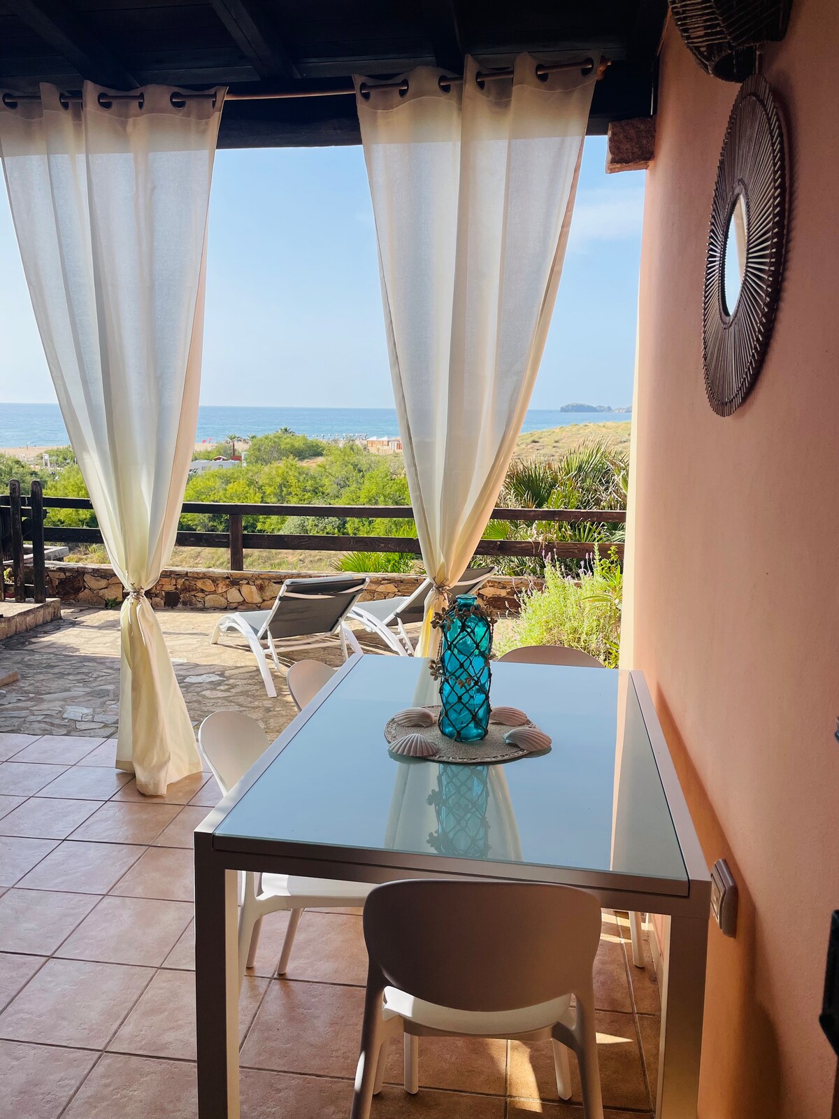 Casa independiente que consta de cocina, dormitorio de matrimonio, dormitorio con una litera y un baño. Terraza cubierta con unas vistas impresionantes del mar, amueblada con mesa, sillas y sillones para que puedas aprovechar al máximo este espacio que es sin duda el más agradable de la casa. Se encuentra en un condominio privado cuidado y vigilado por guardias con estacionamiento gratuito para los huéspedes de las residencias. Localidad turística frecuentada casi exclusivamente por veraneantes.