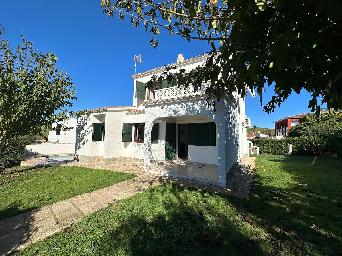 Coqueto chalet con vistas al mar, cerca de la gran playa de Son Bou, en una calle tranquila al final de la urbanización de Torre Soli Nou, a 18 minutos caminando a la playa y a 4 del Cami de Cavalls que lleva hasta Santo. Tiene una terraza exterior y una hermosa piscina (5.5x3.5metros), no climatizada, rodeada de un jardín de flores muy bien cuidado. Una escalera conduce a la terraza para disfrutar de las vistas al mar. https://instagram.com/lamaison_de_lo?utm_medium=copy_link