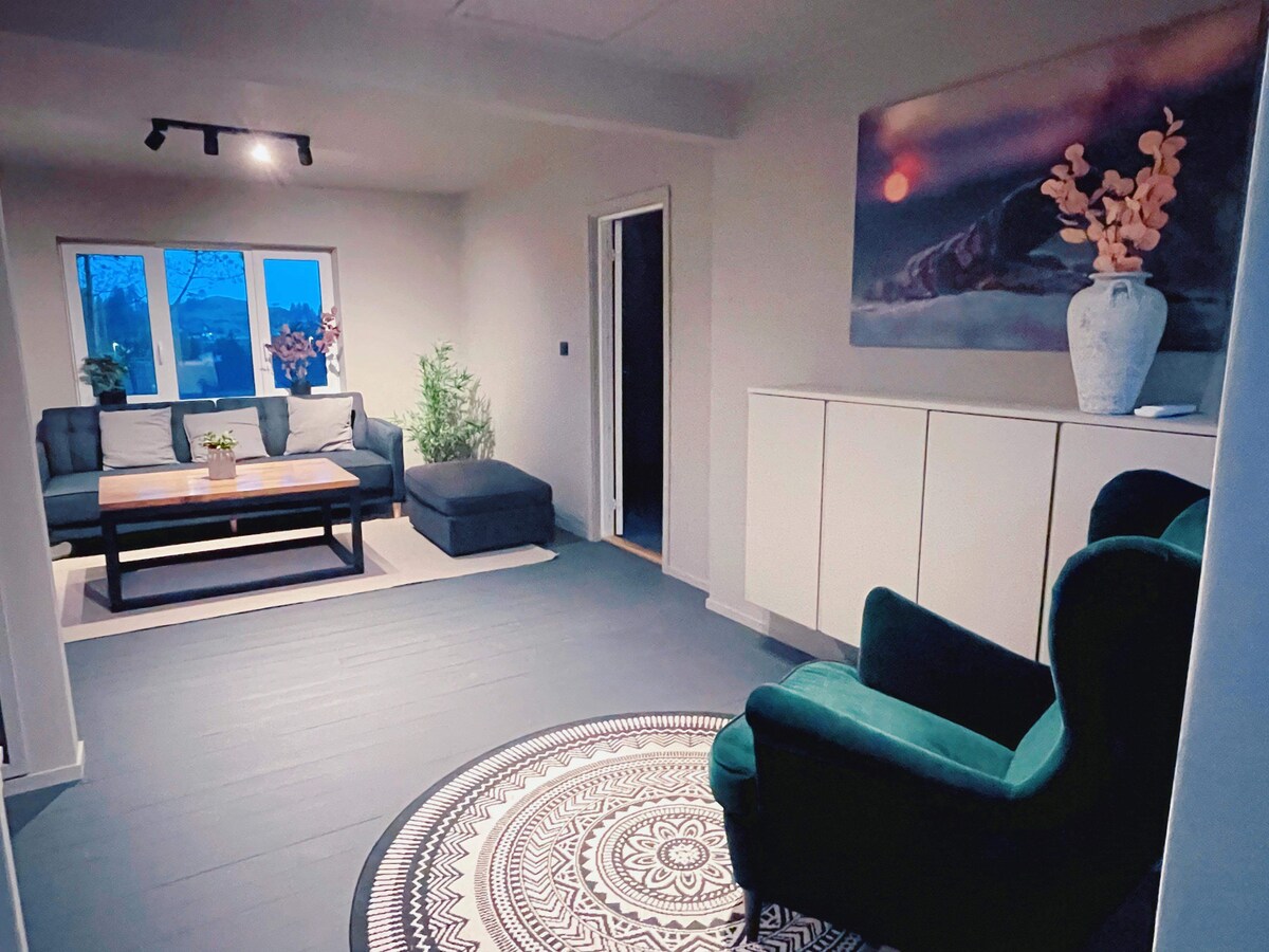 Departamento en el sótano recientemente renovado con cocina nueva y amplio baño. Buen espacio de almacenamiento en un trastero separado. Estacionamiento y cargador de autos eléctricos Zaptec (NOK 3/kWh). Cables de calefacción en todos los pisos y bomba de calor. Pequeño patio privado orientado al oeste con buenas condiciones de sol. Dormitorio con armario y cama de 150 cm de Swan. Sofá cama en la sala de estar de Hovden Møbel con cama extraíble de 160 cm. Ubicación céntrica a unos 2 km del centro de la ciudad de Haugesund y del hospital de Haugesund. A 3 km de otras áreas comerciales. Préstamo gratuito de bicicletas.