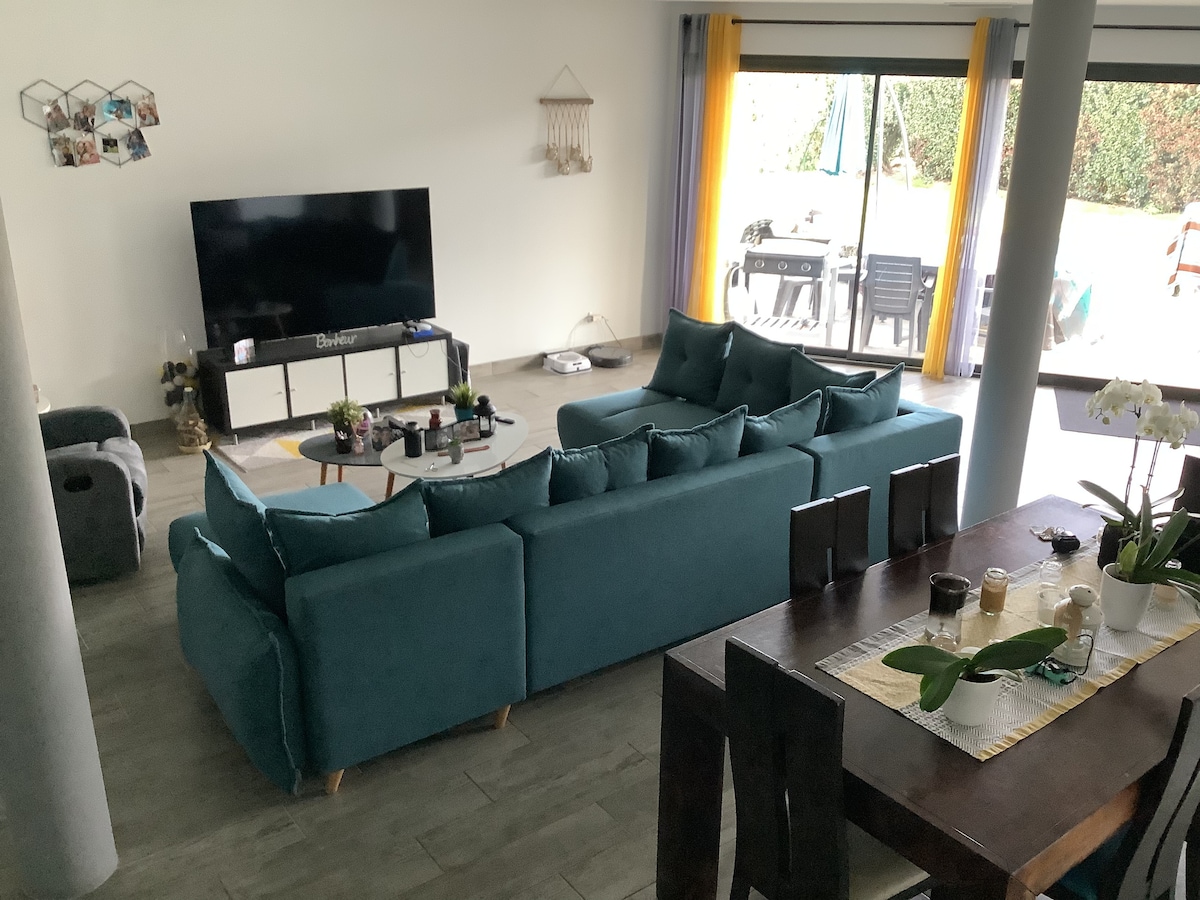 Welcome to our luminous and modern villa with a private pool, two sunny gardens and an airy 4.5-metre high ceiling in the living room. Large sliding doors open fully to both gardens, creating a seamless inside-outside living experience. Located just 12 minutes from the beaches and surf spots of Hossegor, our home offers the perfect balance between calm nature and easy access to restaurants, cafés and shops.