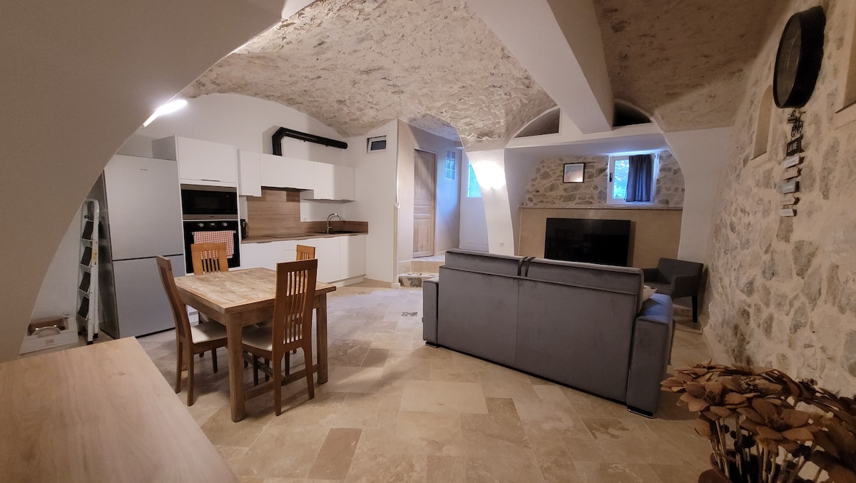 A haven of peace in the pretty medieval village of Peille. Just 25 min from Monaco, Menton or Nice. Enjoy the balcony in the sunshine and visit the wonders of the Riviera or nearby Italy. Hike or bike (electric mountain bike rental in the village). Or work serenely from a distance with the fiber in the quiet. Wifi (high-speed fiber) & smart TV (Netflix included). In the village: 1 restaurant, 1 creperie bar, 1 bakery - 1 mini-market. Free public parking 50 m away.