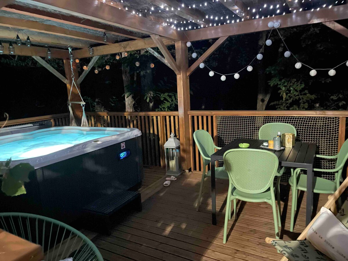 Impresionante chalet espacioso y luminoso de 80 m2 nuevo , construido y decorado por nuestras propias manos, situado en el borde del bosque en el terreno de nuestra casa principal pero completamente independiente. Disfrutará de 2 terrazas exteriores, una de ellas situada en el bosque para un momento de relax con su spa privado. Este alojamiento tiene un estilo inusual y todas las comodidades, en un entorno único propicio para la relajación. Posibilidad de llegar a las 17:00 el fin de semana.