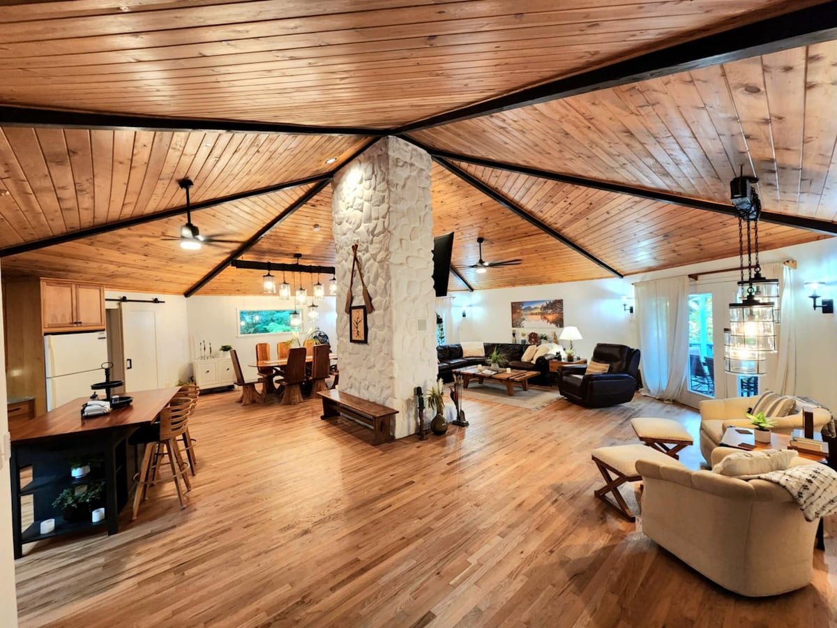 Escape to the serene beauty of Creek Cabin, your ultimate retreat in the heart of nature. Tucked away in a secluded creek side setting, this peaceful cabin is the perfect blend of rustic charm and modern comfort, providing an unforgettable vacation experience in the North Georgia Mountains. Each of the three king bedrooms comes with its own bathroom. the square footage of the cabin is around 2,300. Please see our 4 other AIRBNB properties