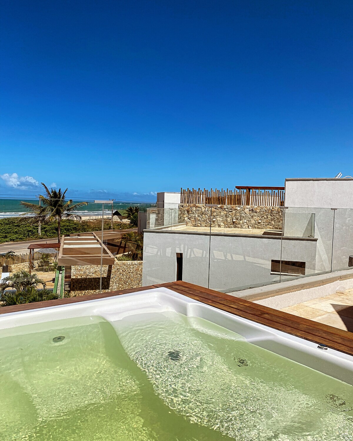 ¡Te damos la bienvenida a la escapada perfecta para relajarte y disfrutar de lo mejor de Flecheiras! Este increíble loft de alta gama ofrece comodidad, sofisticación y una experiencia única. Cómoda habitación con ambiente acogedor y con aire acondicionado, ideal para descansar. Con una cocina compacta y equipada, y una exclusiva azotea con vistas al mar, relájate en el jacuzzi privado mientras disfrutas del impresionante paisaje y una puesta de sol inolvidable. ** No se proporcionan sábanas ni toallas de coma.