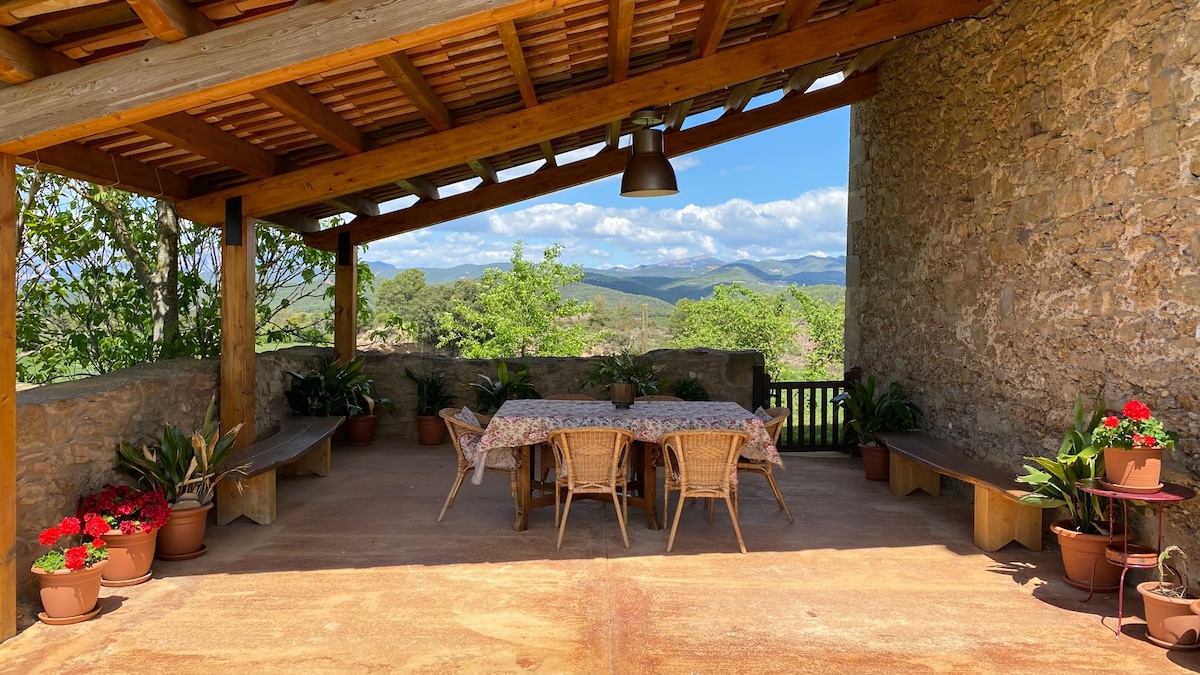Casa de 445m2 ideal para grupos. Ubicada en un pequeño y bucólico pueblo del Prepirineo catalán es el sitio perfecto para unos días de relax y desconexión del día a día de la ciudad. El pueblo ya no tiene habitantes fijos, y sin ninguna carretera principal que lo cruce, carece prácticamente de tráfico rodado, lo que hace el lugar perfecto para ir con niños, que podrán jugar y correr libremente por sus calles sin peligro. La magnífica terraza con vistas, la chimenea y la BBQ hacen el resto.