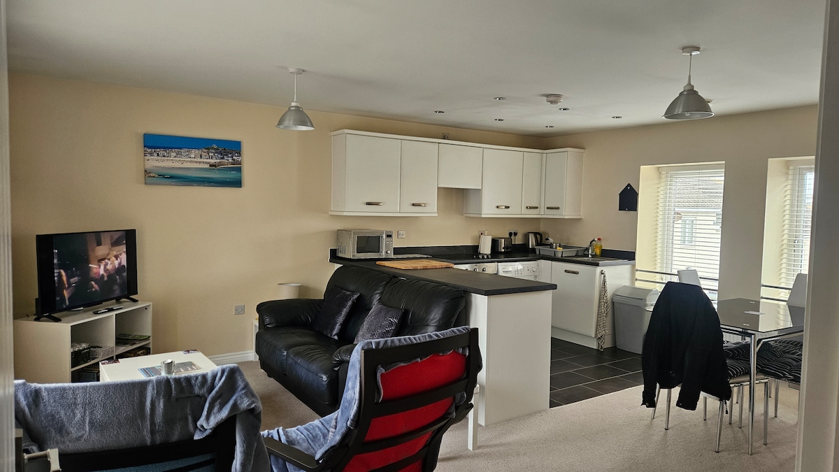 Hasta dos adultos (mayores de 18años) solo se adaptan a las parejas. Un apartamento independiente con vistas al mar, está perfectamente ubicado en Porth, cerca de la playa, que está a pocos pasos. El Mermaid Inn (pub en la playa en sí) sirve comida y una cafetería que sirve helados, etc. La ciudad de Newquay está a poca distancia. Hay una entrada separada y estacionamiento fuera de la carretera para un auto. Smart TV de 50pulgadas en la sala de estar y un televisor inteligente de 43 pulgadas en el dormitorio. Cama tamaño king. Cocina totalmente equipada. Lo siento, no se admiten mascotas.