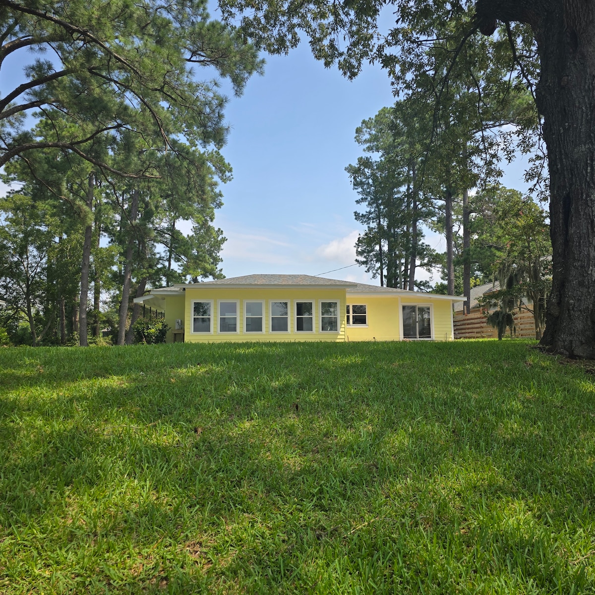 Adorable casa de campo renovada de 1953 ubicada en el corazón de New Bern. Camina hasta la tienda de comestibles. A 1,4 millas del centro comercial Twin Rivers y Wal Mart. A dos millas del centro histórico y a media milla del Centro Médico Regional de Craven. Restaurantes cercanos. Barrio transitable. La sala de estar tiene un nuevo televisor inteligente, wifi y está recién amueblado. La casa cuenta con dos dormitorios, dos camas individuales y una queen con ropa de cama nueva y colchones nuevos. Bañera de baño con ducha y lavadora y secadora. Cocina con encimeras de granito e isla. La cocina tiene capacidad para cuatro personas con comida en la mesa. Keurig una taza de café, aperitivos para el desayuno, café, agua embotellada de cortesía. Todos los electrodomésticos nuevos. Se proporciona todo lo que necesitas para una estancia cómoda. Patio trasero vallado con estacionamiento en la entrada de la terraza para dos vehículos. El check-in es a las 3:00 p. m. Salida a las 11:00 a. m.