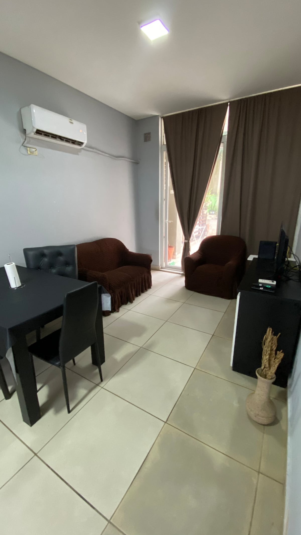 Disfrutá de la sencillez de este alojamiento tranquilo y céntrico.Estamos a 2 cuadras del centro comercial, con una terraza de 40m cuadrados para disfrutar, con vista al jardin.Y mesa para estar al aire libre.