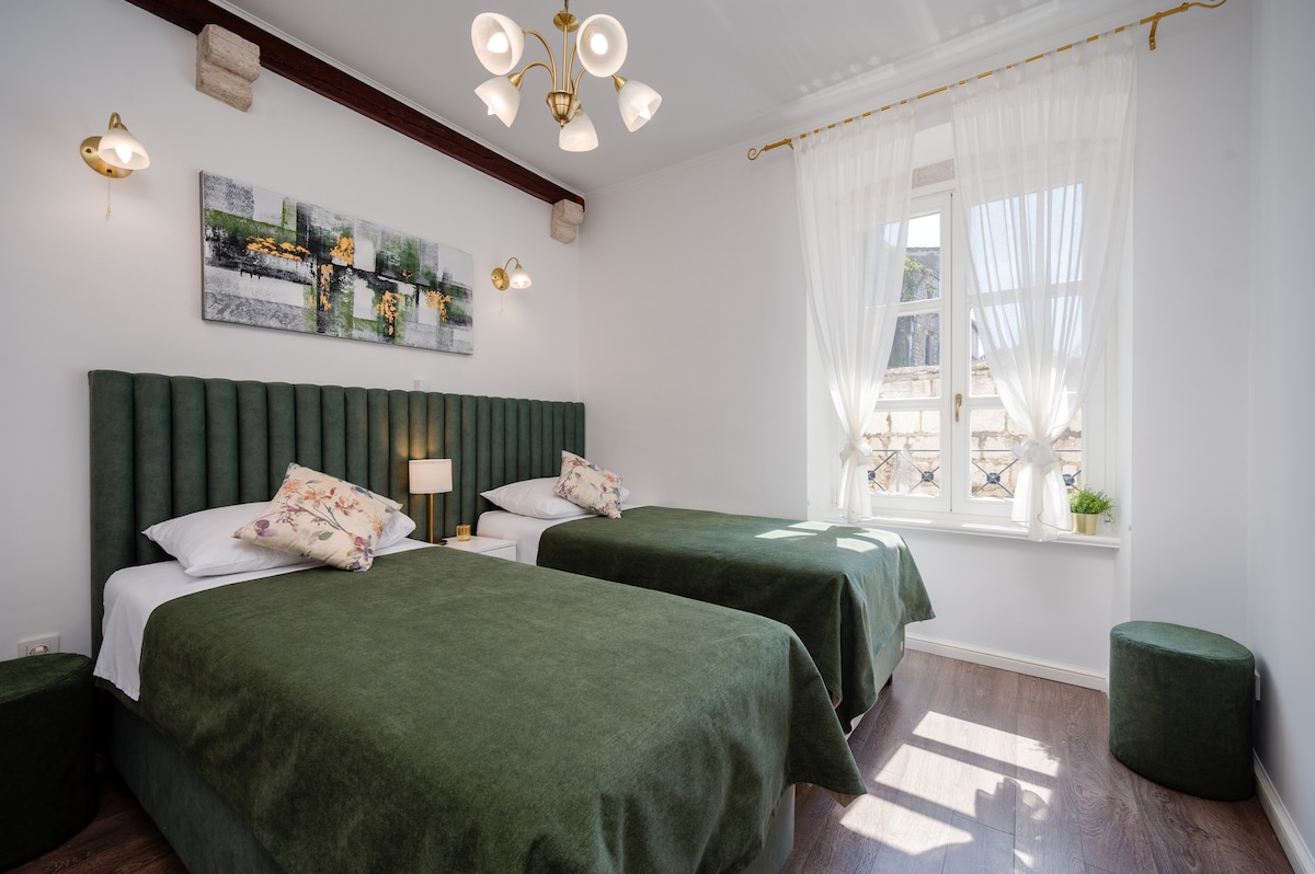 Esta casa, una de las casas más antiguas de Trogir (completamente renovada en 2016) es el alojamiento más cercano a la céntrica plaza histórica de Trogir. Además, es una casa nacida de un padrino croata del siglo XIII. La catedral y todos los sitios importantes están literalmente a segundos de ti. Te encantará no solo por la mejor ubicación que pueda ser, sino por la mejor ubicación, sino que la habitación en sí está decorada con mucho gusto: un estilo antiguo impresionante con un toque moderno. Disfrutarás cada segundo de ella.