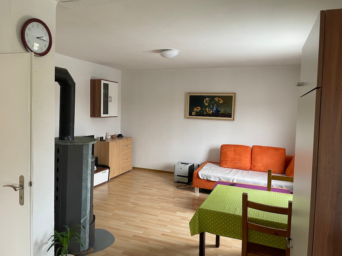 Die Ferienwohnung ist einfach, gemütlich, naturnah für 2 Erwachsene+Kleinkind+Hund Küche mit Esstisch für 4 Personen, Lesesessel, Backofen, Toaster, Kaffeemaschine, Wasserkocher, Koch-Ess-Grundausstattung, bioTee, bioFilterkaffee, bioÖl, bioEssig WohnSchlafraum Bad mit Dusche Balkon mit Gartenblick+Sitzgelegenheit Spirit of Om Bettwäsche+Handtücher Auf der gleichen Etage ist unser Sonnenzimmer. Wenn Ihr zu viert reist: Einfach dazu buchen. https://www.airbnb.com/slink/Loatly6i