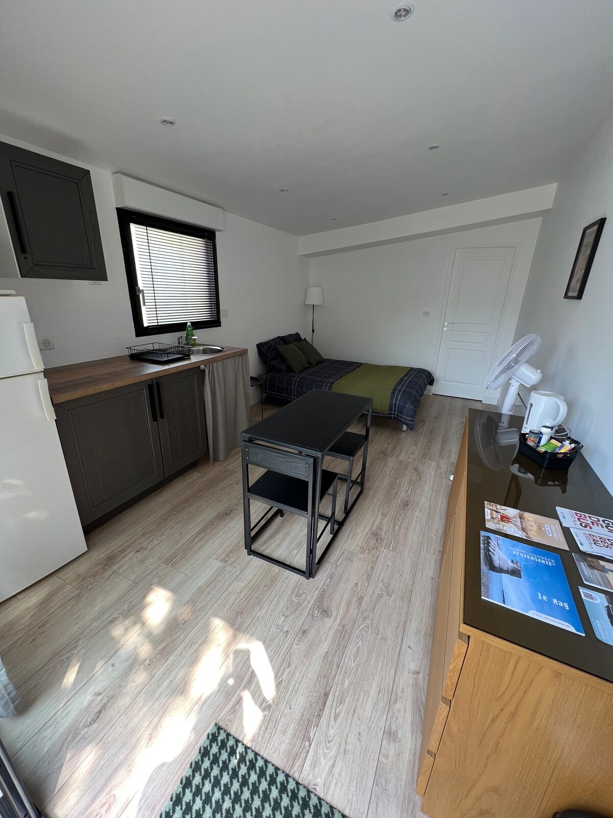 Estudio luminoso en la planta baja, tranquilo con acceso privado por el garaje del propietario. cerca de todos los servicios (parada de autobús a 100 m , tiendas, restaurantes, estación de tren SNCF). Con una ubicación ideal para descubrir la zona entre el mar, el estilo, las marismas y otros lugares turísticos. Cerca de los astilleros y Air Bus. Este estudio consta de: una cama doble, una cocina, cuarto de baño con ducha y WC, terraza exterior disponible para disfrutar del jardín. Aparcamiento gratuito. Wifi.