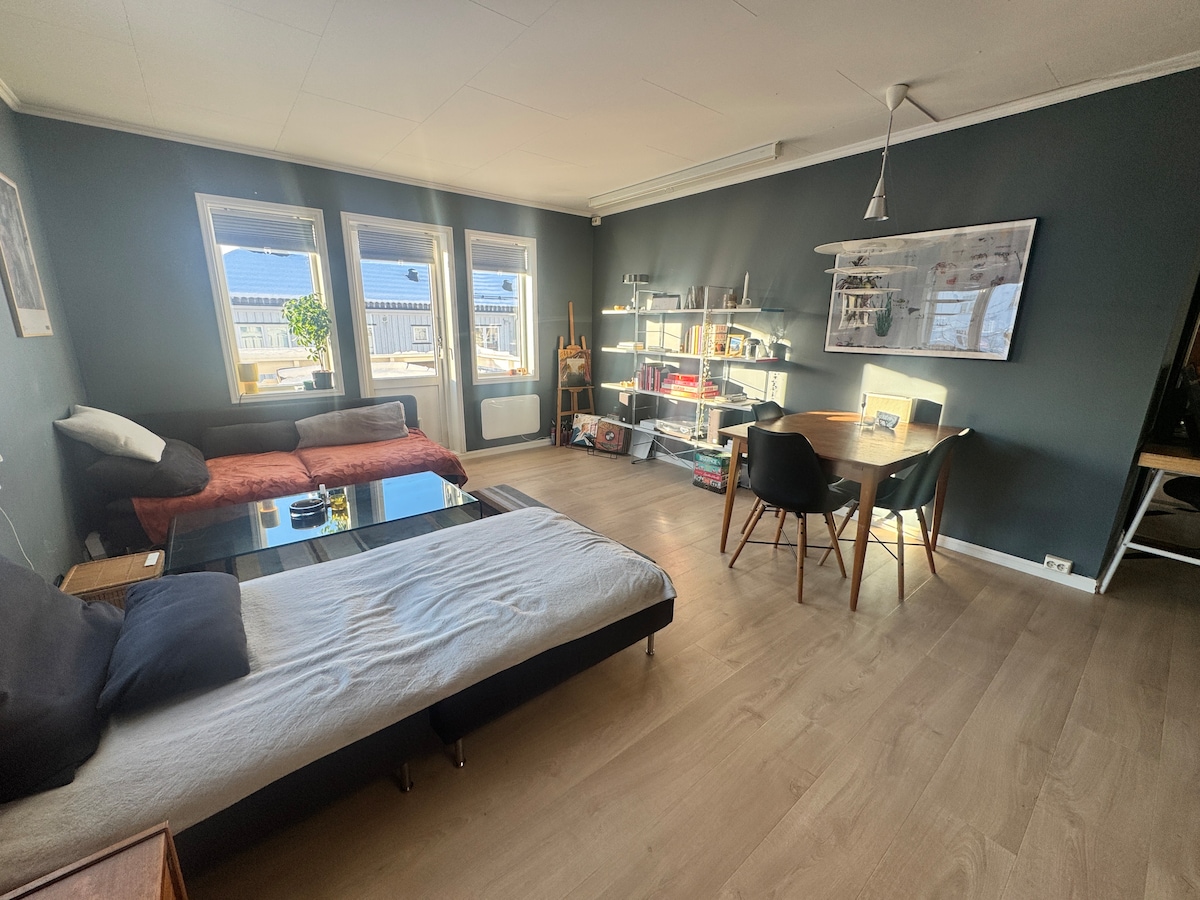Apartamento céntrico y moderno ubicado en el corazón de Trondheim. A poca distancia de todos los bares y restaurantes. Tienda de comestibles y centro de transporte público cerca. A 10 minutos a pie del centro de la ciudad.