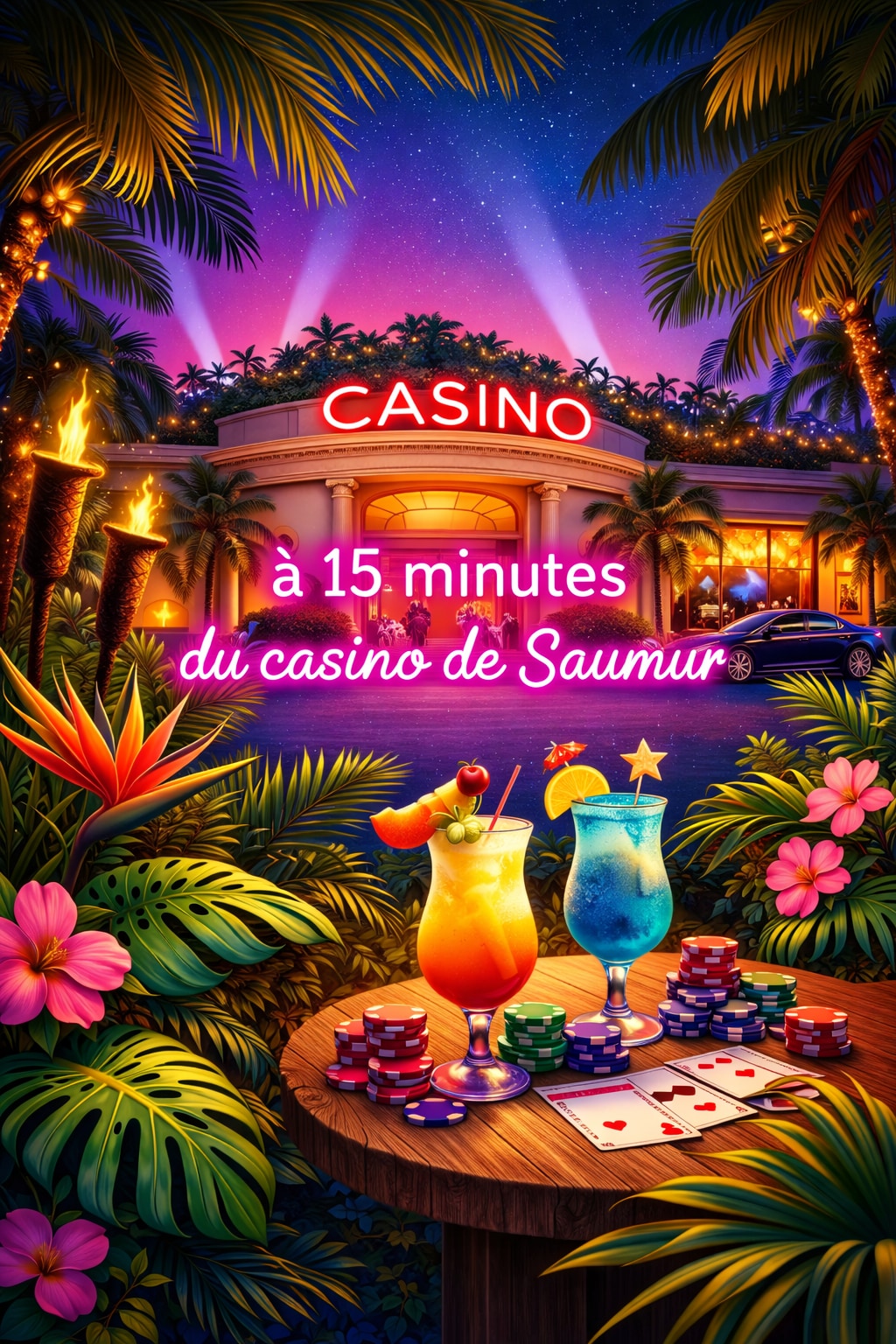 ✨ Découvrez le Mirage Tropical , une parenthèse raffinée au bord de la Loire 🌴. Profitez d’un Spa , Table de Massage d’une terrasse élégante et d’un espace jungle dépaysant pour vous évader. Amusez-vous autour du jeu de fléchettes, partagez un apéro exotique ou détendez-vous dans une atmosphère unique. Le soir venu, la chambre s’illumine de couleurs envoûtantes pour un moment chic et romantique 💖. Ici, chaque détail sublime votre séjour pour créer des souvenirs mémorables.🌴❤️❤️💕💕💕👄🫂❤️