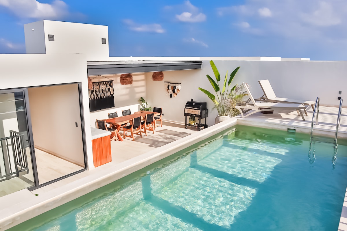 ¡Loft en la selva con piscina, cerca de la playa, centro y cenotes!