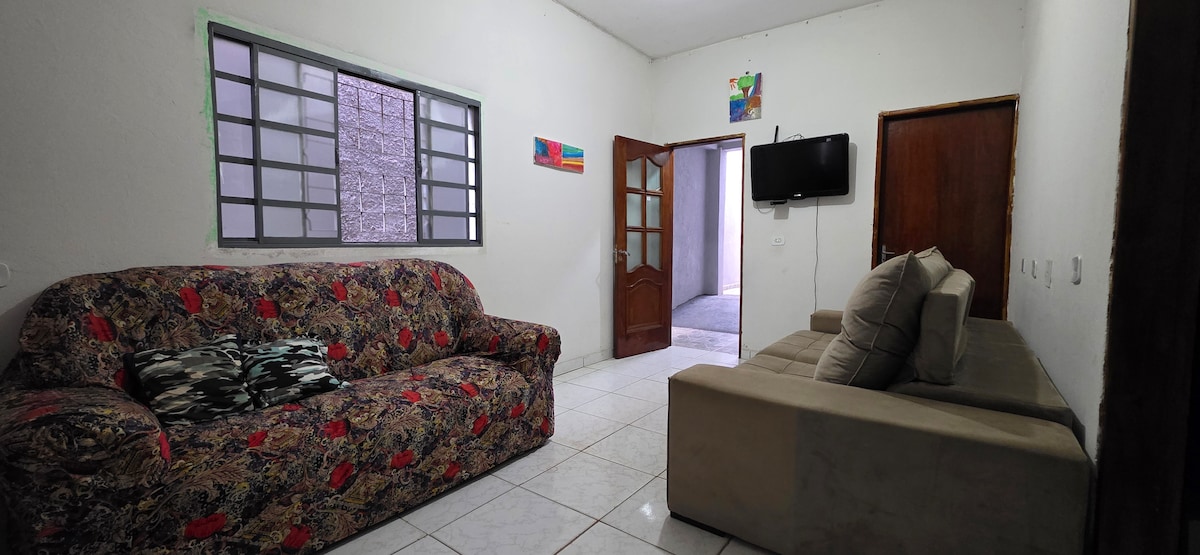Casa grande y acogedora, garaje para hasta 4 coches. Cuenta con portón eléctrico, portón electrónico, portero automático, bien ubicada (con bares, supermercados y farmacias y un club muy cerca. La suite es una habitación con TV, TV en la sala de estar, armario americano y ducha climatizada. Iluminación cálida. Valoramos la higiene y la esterilización de todo en cada cambio de huéspedes. Lugar súper tranquilo y casa segura. A 1,5 km de la UFU, UEMG y FACMAIS.