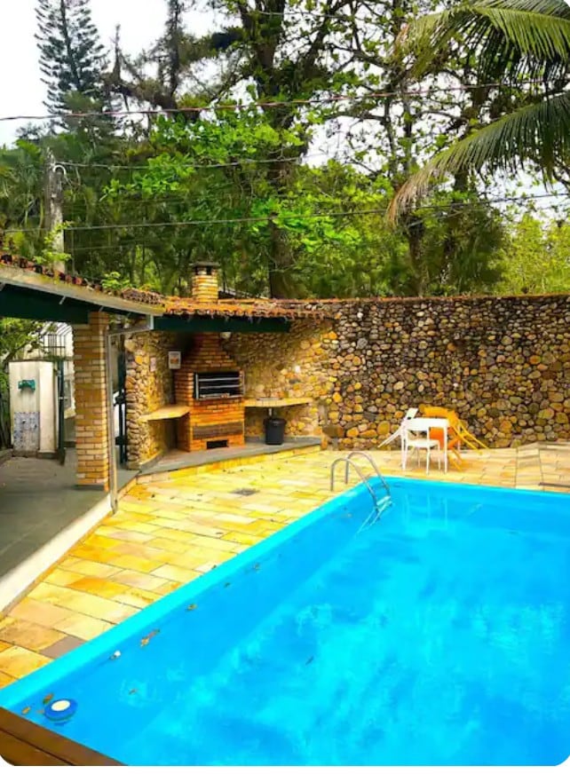 La acogedora residencia ofrece espacio para 12 personas, en la qual podrán disfrutas de una bella piscina, jacuzzi y estación de barbecue. La casa proporciona aire acondicionado y espacio para 4 automóviles. La residencia está también localizada a 10 minutos de Praia Grande ( una de las playas mas hermosas y con mas movimiento ). Esta también localizada cerca de mercados y heladerías.