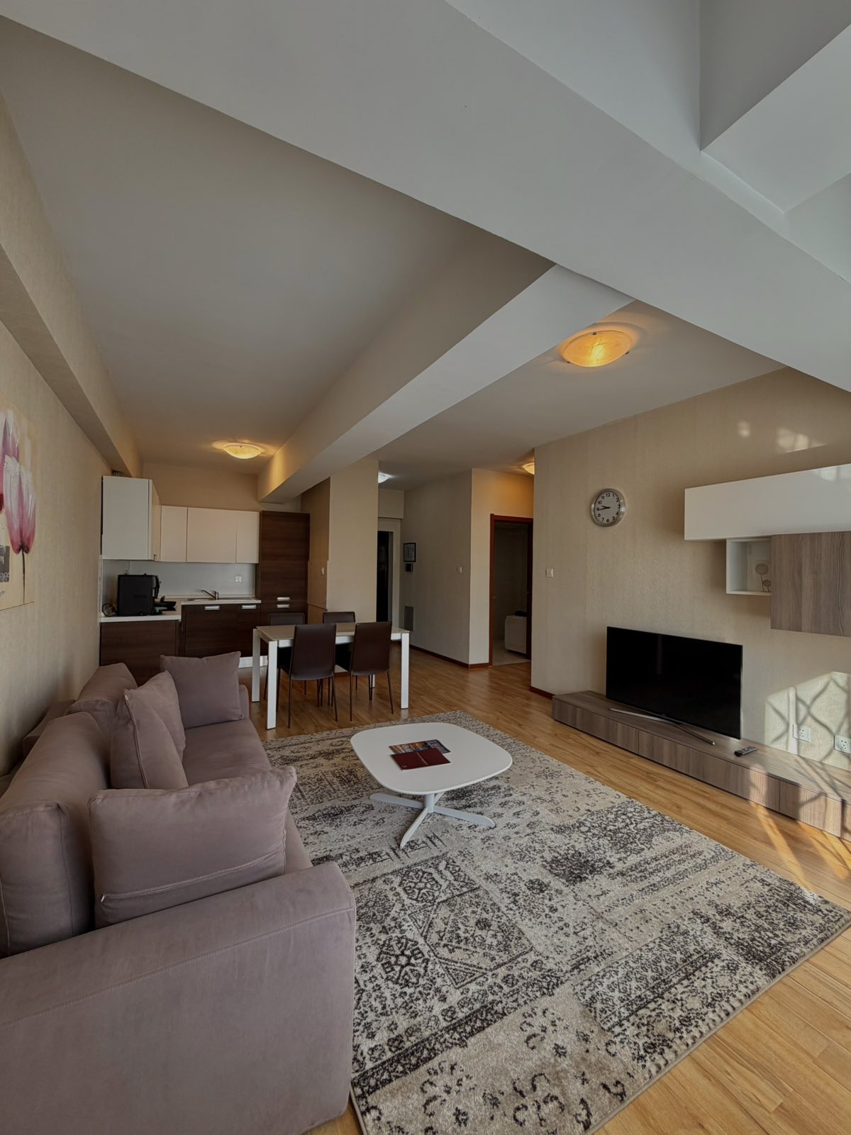 This sunny and warm luxury apartment in a modern high rise building is located in a new residential area across the street from a large park. The quiet one-bedroom apartment is suitable for mid to long term contractors. It has a spacious living/dining area with a beautiful wall to ceiling curved window. The residential town is serviced with restaurants, coffee shops, convenience stores, hair and beauty salons, dry cleaning, fitness club and many others. Please contact owner for more inquiries.