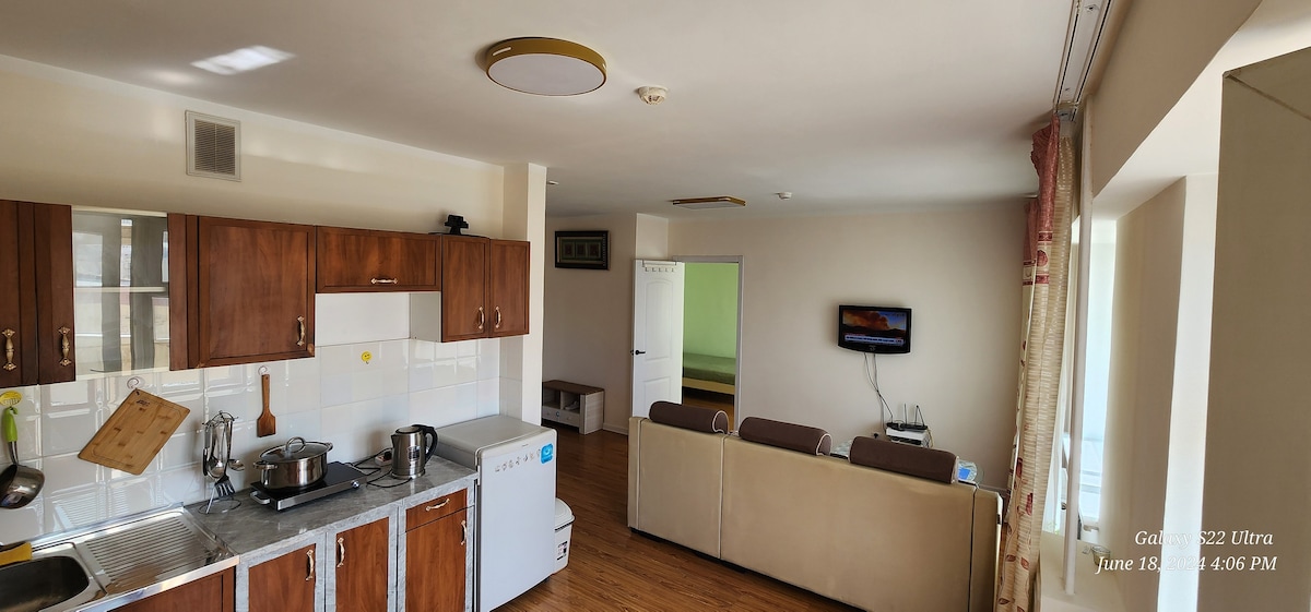 A 1 bedroom apartment located in the prestigious area of Ulaanbaatar, 3 kms from the city center. free wifi and free parking available.Very friendly environment. It is clean and tidy with complex furniture and electronic ware.