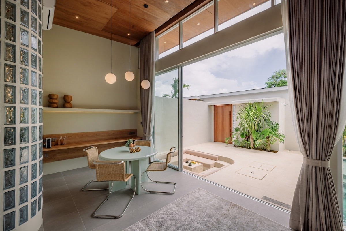 A bright and open 1-bedroom villa featuring a larger private pool and generous outdoor space, perfect for long dips, lounging, and soaking in the Uluwatu breeze. With a cozy open-concept living area, a comfy bedroom, and a peaceful tropical setting, this villa is ideal for couples and solo travelers looking for a quiet, stylish escape close to Uluwatu’s cafés and beaches. Please note we have construction works ongoing in our villa complex.