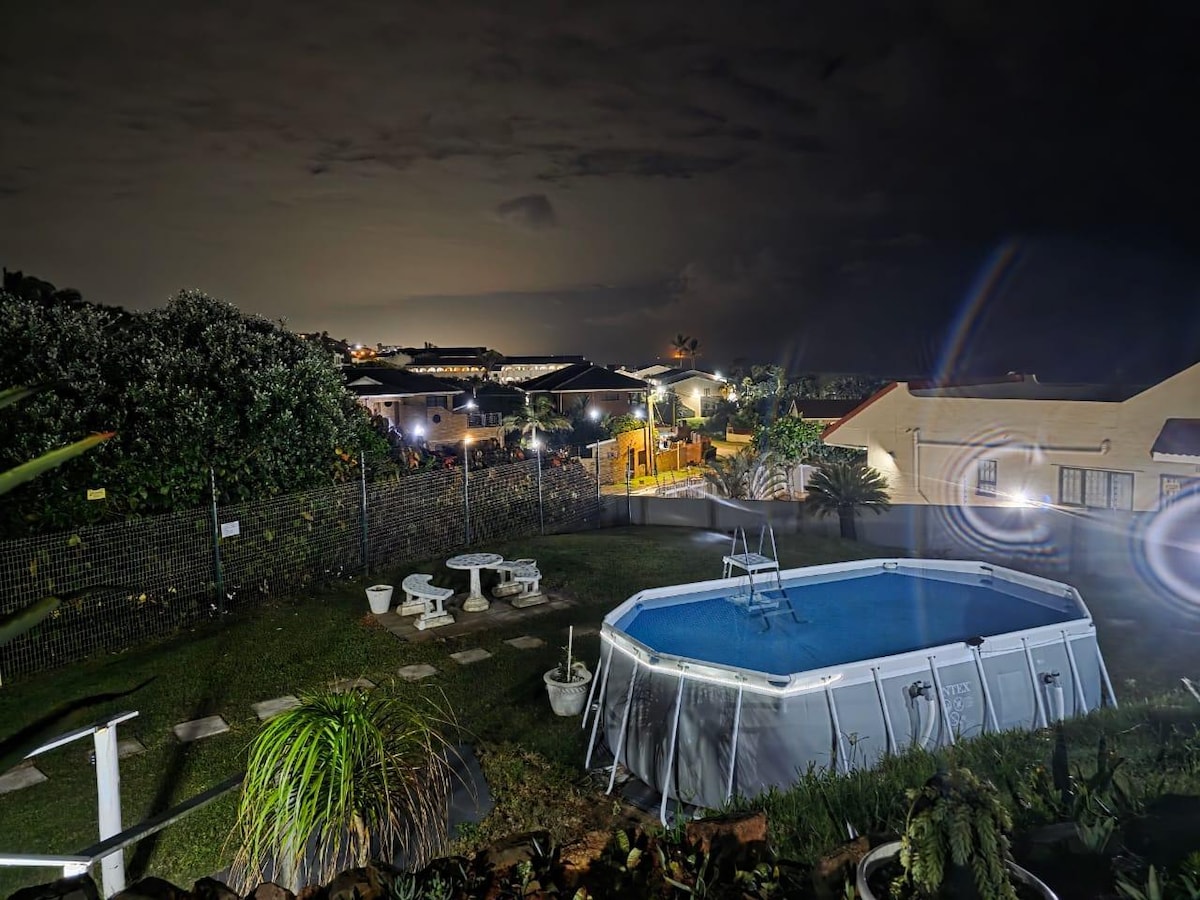 Escape to our spacious 4-bedroom holiday home in Scottsburgh, just a block from the golf course and close beach. Enjoy a fully equipped kitchen, cozy lounge, and a welcoming bar area. Relax by the sparkling pool or unwind in the lush garden. Each bedroom offers comfort with aircon, TVs, and 3 has ensuite bathrooms. The entertainment area and braai area are perfect for making memories with loved ones. Your serene coastal retreat awaits—experience the warmth and charm of this special getaway.