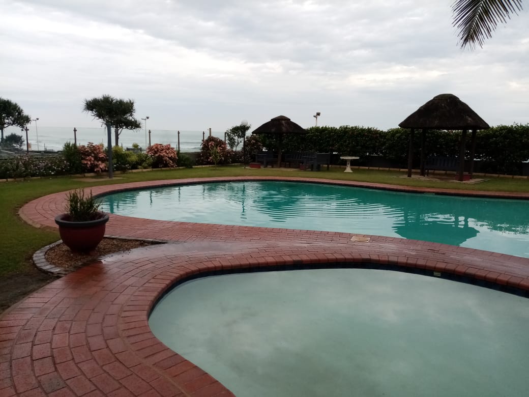Enjoy the sea in a secure complex with beach access. Recently renovated second floor unit with stunning sea and pool view. The privately owned unit consists of an open plan living area and kitchen, two separate bedrooms and a separate bathroom. The unit has aircon, wi-fi and guests have access to DSTV Now and Netflix. There is a pool and braai areas for guests to use. A designated parking area and parking for trailers. The flat is serviced during the week and there is security overnight.
