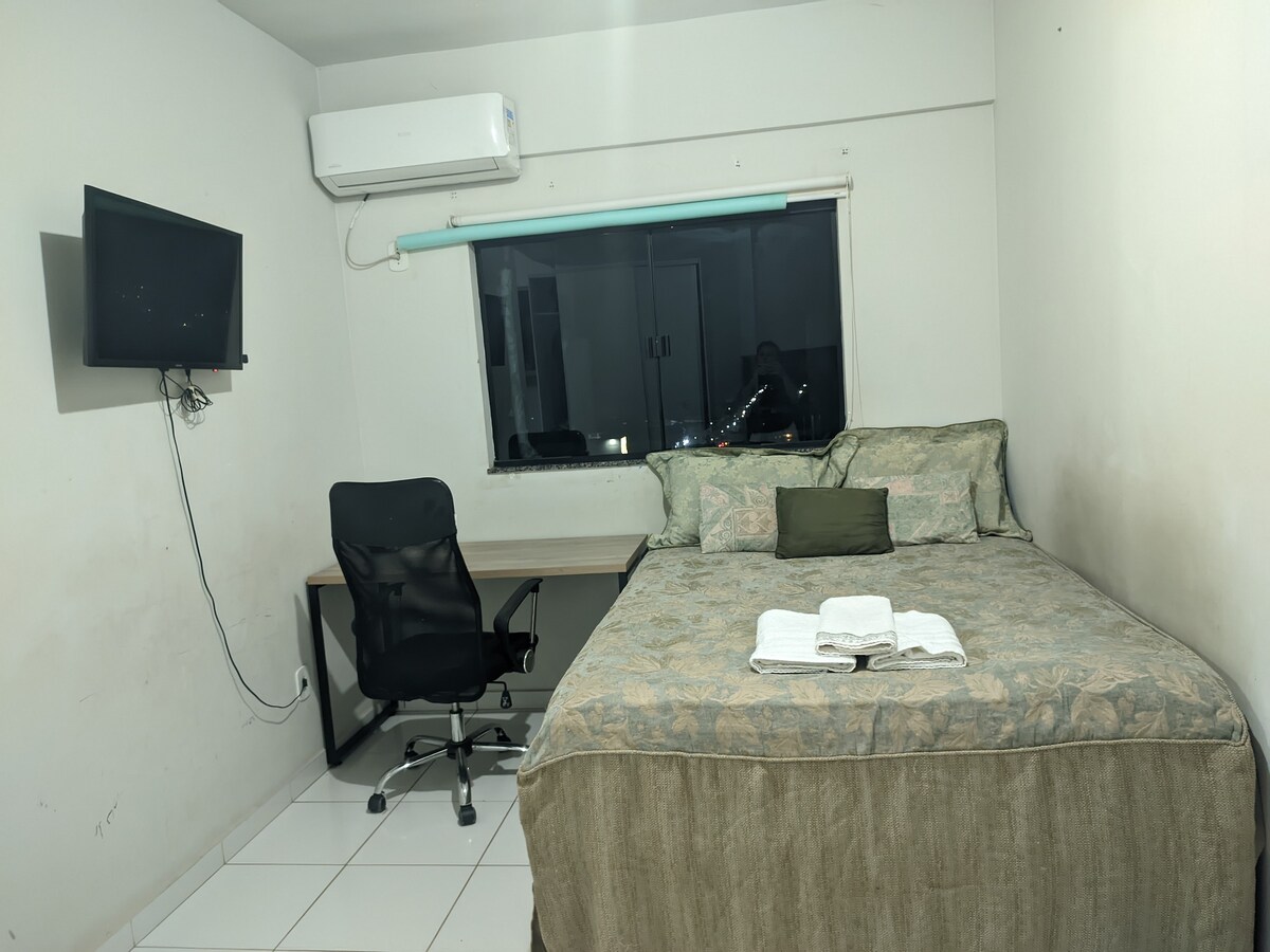 Seja bem-vindo(a) à sua nova hospedagem favorita! Esta kitnet foi pensada para oferecer conforto, praticidade e uma excelente localização para sua viagem. Ideal para casais e viajantes. 🛏 Espaço confortável: Cama aconchegante para noites de sono tranquilas. 📺 Entretenimento: TV e Wi-Fi de alta velocidade para trabalho ou lazer. ❄ Climatização: Ar-condicionado para seu conforto em qualquer estação. 🚗 Fácil acesso: Localização privilegiada, próximo a comércios, transporte e pontos turísticos.