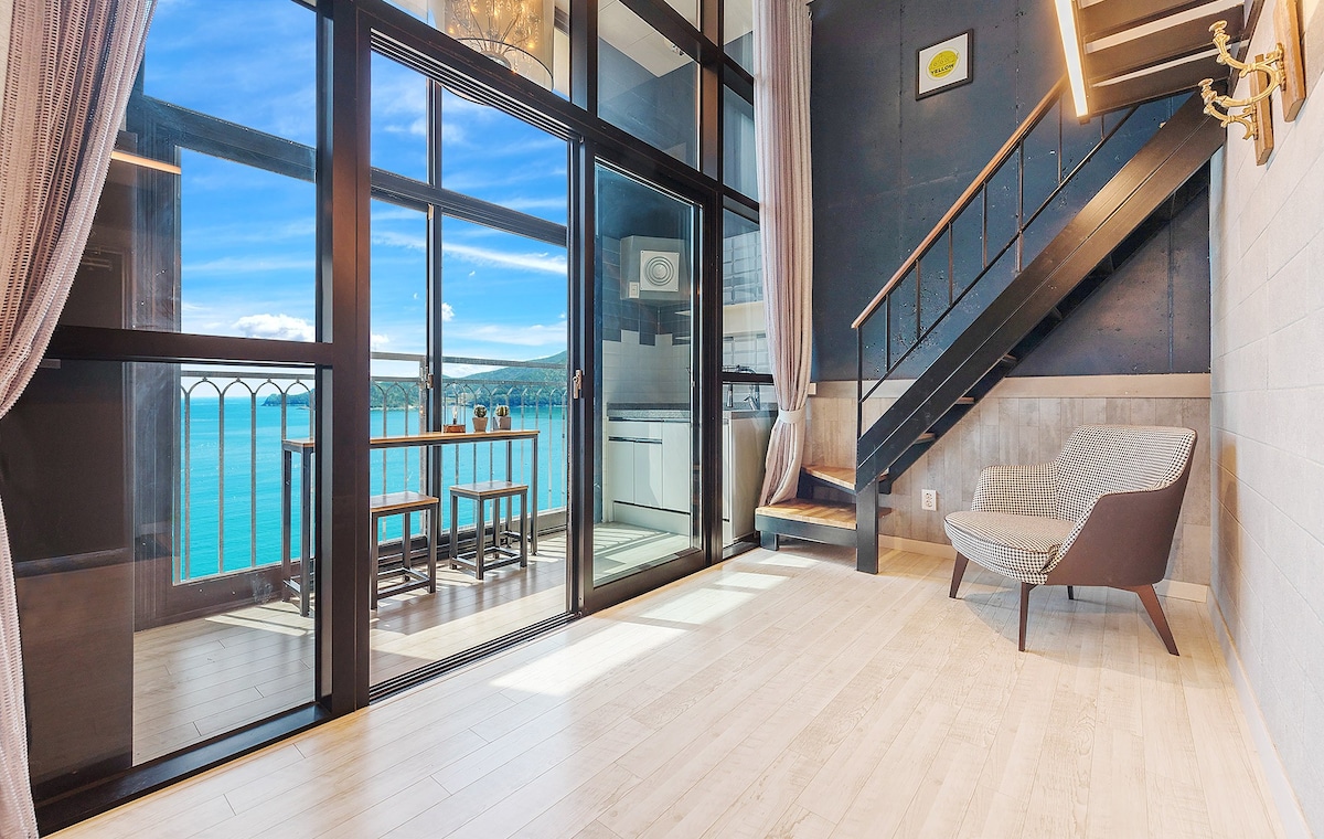 낭만적인 여수 오션뷰 복층형 넓은 숙소의 오션뷰 D102호