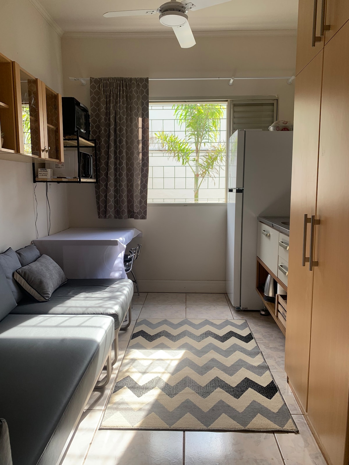 Estudio muy bien ubicado cerca de PUCC, UNICAMP, Hospital das Clínicas, Shopping Dom Pedro y Hospital Madre Theodora. ¡A 300 metros del estudio hay un mercado 24 horas, llamado OXXO! ¡La suite cuenta con cama doble, ventilador, microondas, minibar, cocina eléctrica, encimera y silla perfecta para trabajar o estudiar, armarios y plaza de garaje! Además, la suite tiene acceso fácil y privado. ¡Tiene wifi!