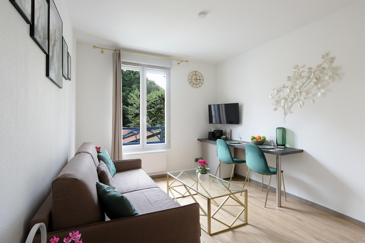 Profitez d'un logement élégant et central en presqu'île de Lyon. A deux pas de la gare Perrache, des transports en communs (tram T1 &T2, Métro A), l'appartement en dernier étage avec ascenseur jusqu'à l'avant dernier étage, bénéficie d'une belle vue dégagée sur la place Carnot. Il se compose d'une pièce principale avec cuisine équipée, coin repas, et un espace salon avec un canapé lit. La chambre spacieuse avec placard et bureau est attenante à la salle d'eau avec wc séparés.