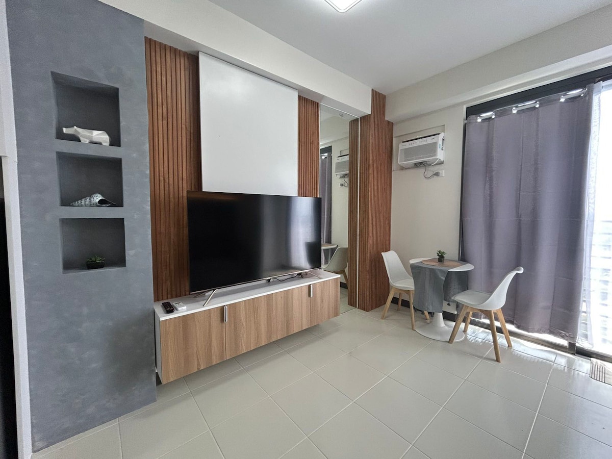 La unidad es nueva, tiene todas las comodidades como WiFi de 50 Mbps, barra de sonido y PlayStation con acceso a Netflix, HBO Max y Prime Video,la ubicación está cerca de las siguientes oficinas gubernamentales, DENR, DPWH y Camp Vicente Lim. La habitación está equipada con aire acondicionado y purificador de aire Sharp Plasmacluster con grupo de mosquitos incorporado.