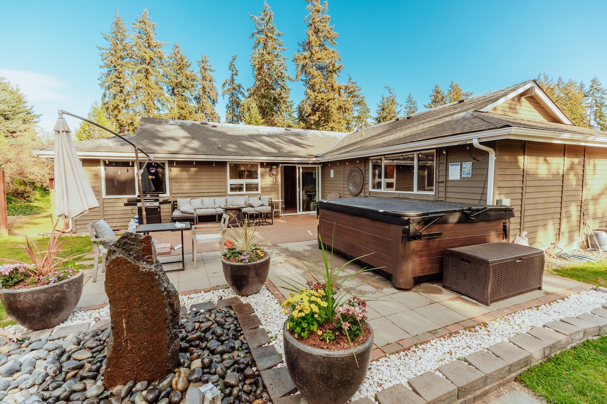 Descubre la belleza natural de la isla Vashon desde la comodidad de una acogedora y moderna cabaña. A un corto trayecto en ferry desde Seattle o Tacoma, The Wolf Den está escondida en el bosque y ofrece el refugio perfecto para parejas o personas que viajan solas en busca de una escapada reparadora. Con todos los servicios para una estancia relajante, te sentirás como en casa. Después de explorar los senderos, las playas y los lugares de interés de la isla, relájate en el jacuzzi de leña y deja que el ritmo tranquilo de la vida isleña te rejuvenezca.