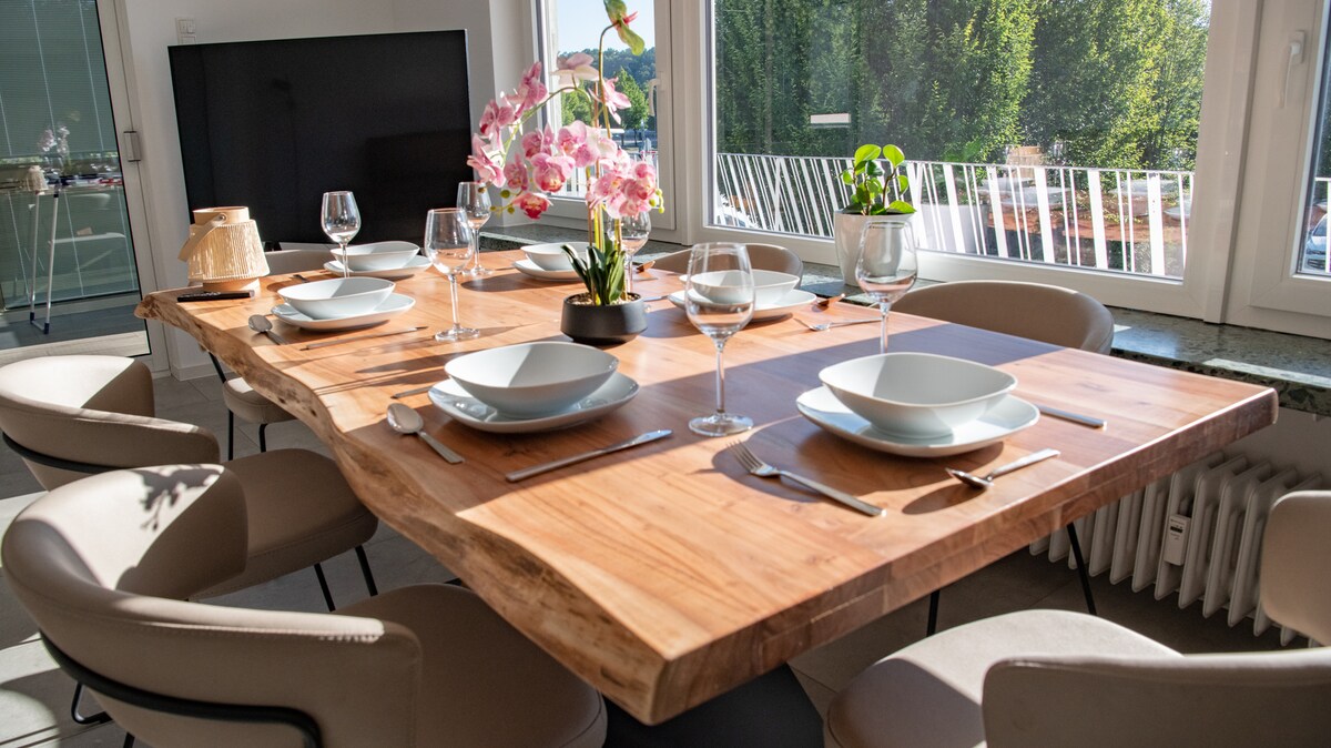 Bienvenido a nuestro encantador apartamento de 80 metros cuadrados recién renovado, en la tranquila y pintoresca zona rural de Hohenstein. Si está buscando un descanso acogedor y tranquilo, este es el lugar perfecto. 2 acogedoras habitaciones con camas tamaño queen y una sala de estar con sofá cama con capacidad para 6 personas para unas vacaciones acogedoras. Debido a su ubicación, el apartamento ofrece un fácil acceso a actividades al aire libre como senderismo, piragüismo, equitación y exploración del paisaje.