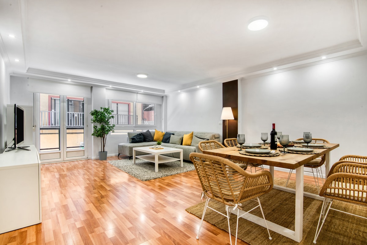 Este acogedor apartamento en la planta baja se encuentra a solo 5 minutos de la estación de tren Renfe, a 10 minutos del centro de la ciudad y a 20 minutos de la playa de Postiguet (playa de la ciudad). Completamente renovado en 2017 con cocina abierta, electrodomésticos nuevos y TV inteligente de 43 pulgadas. Gran salón, patio privado, cocina equipada con fogones, microondas y horno, aire acondicionado en el dormitorio (calefacción/refrigeración). Una cama doble en el dormitorio, 2 camas individuales en el salón y posibilidad de añadir una cama supletoria para el quinto huésped.