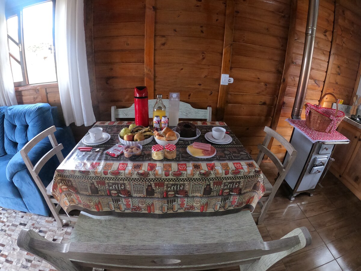 Chalé Sol da Serra é acolhedor e perfeito para reunir a família e os amigos, sair da rotina e viver dias felizes com conforto e tranquilidade noites na praça de fogo, assando marshmallows e brindando sob um céu intensamente estrelado. O ar puro da Serra renovam as energias. O balanço gigante para fotos e risadas inesquecíveis. Cesta de piquenique para tardes leves com quem você ama. Fácil acesso, a apenas 4 km dos serviços essenciais, a combinação ideal entre a natureza e a praticidade.