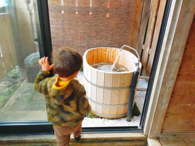 薪割り+露天薪風呂体験 Try our open-air wood-fired bath