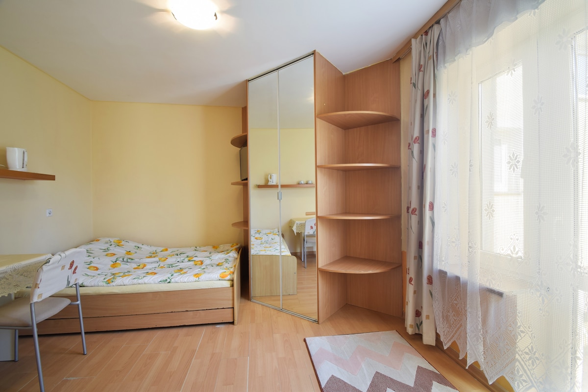 Będziesz mieć ułatwione zadanie z planowaniem wolnego czasu, bo stąd jest wszędzie blisko. Kładka dworcowa prowadząca na perony, na deptak i do parku nadmorskiego w odległości 50 m od budynku. W promieniu 100 m restauracje, kawiarnie, smażalnie, dyskont spożywczy. Do Starówki i na plażę zaledwie 8 minut spacerem. Zapewniamy pościel i ręczniki, sprzęt plażowy oraz wyposażenie AGD. W pakiecie strzeżone miejsce parkingowe przy obiekcie. Dwa łóżka dwuosobowe. Słoneczne pokoje.